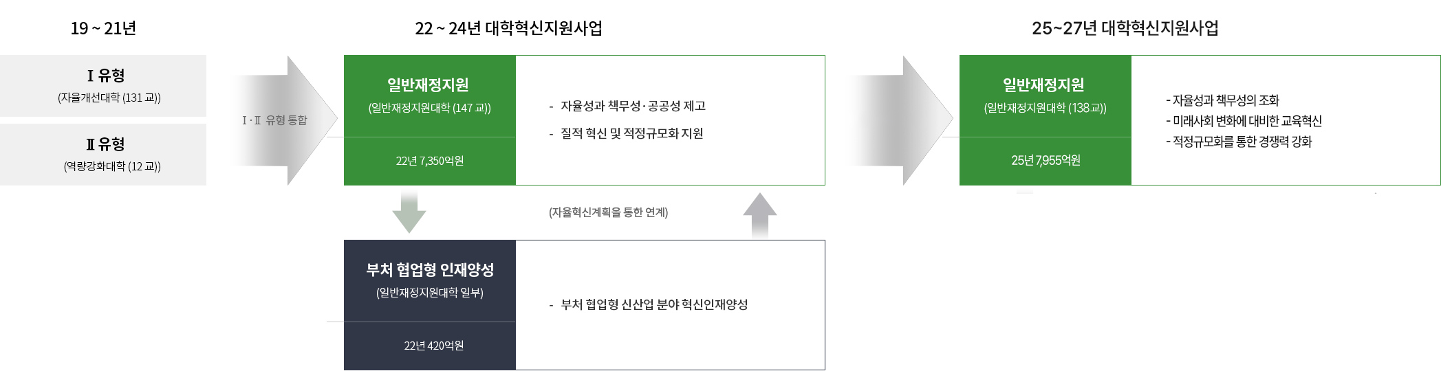 미래사회 변화에 대응하여 대학 기본역량 강화 및 전략적 특성화를 지원하고 대학의 자율·혁신을 통해 국가 혁신 성장의 토대가 되는